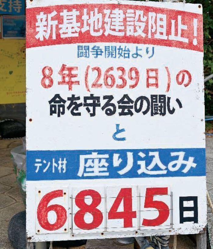 7日、ゲート前の抗議に参加した読谷村の男性(72)はひろゆきさんの投稿について「遊び半分で県民の戦いを愚弄する行為で許せない。わびてほしい」と憤った。