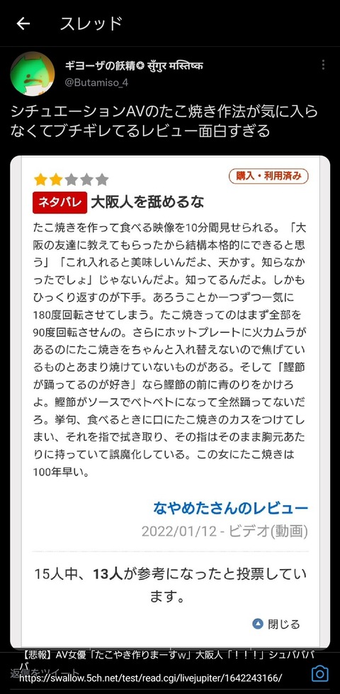 【悲報】大阪人さん、たこ焼き系AVに本気でブチ切れてしまうwywywywywywywywywywywy Twitter Facebook はてブ LINE コピー 2022.01.17 スポンサーリンク 1:風吹けば名無し:2022/01/16(日) 15:04:54.27 ID:zmRGXlLLa.net 🤪 5:風吹けば名無し:2022/01/16(日) 15:05:41.09 ID:3ynDTBQ70.net 銀だこに親を殺された連中やぞ 7:風吹けば名無し:2022/01/16(日) 15:06:36.60 ID:Y0NjDwSC0.net 購入・利用済み草 続きを読む