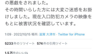 その時間いらした方には大変ご迷惑をお掛けしました。現在入口防犯カメラの映像をもとに被害状況を確認しています。