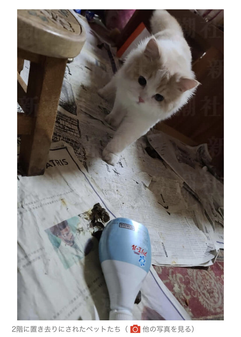 犬猫はきちんとしつけられておらず、そこら中で用を足してしまうので新聞紙を敷いているという。不衛生な環境ゆえか、