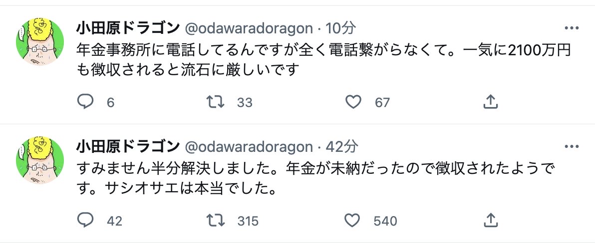 ただの行政通知を無視しまくった挙げ句の年金未納でした pic.twitter.com/8HfUgui2gU