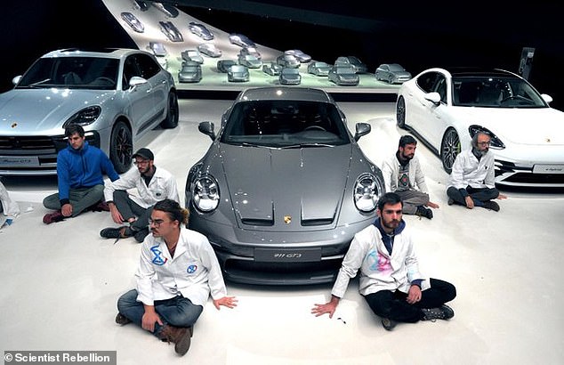 環境活動家たちがポルシェのショールームで座り込み。手を糊で接着、ハンストを始める者も。
