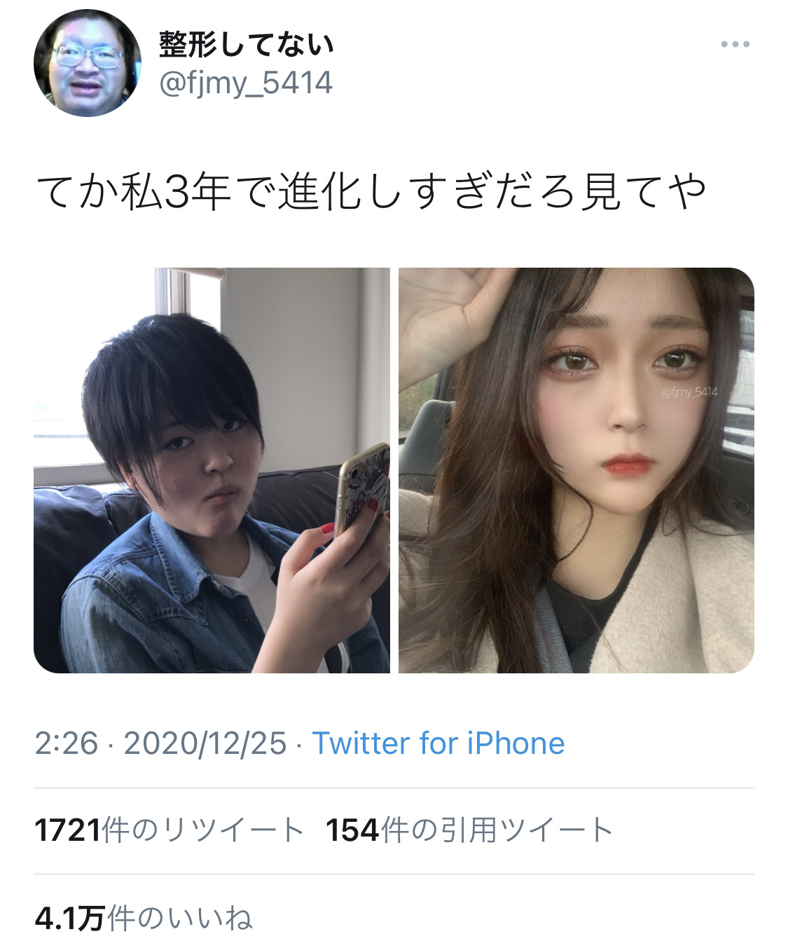【画像】ボーイッシュJKさん、たった3年で「オンナ」になってしまう Twitter Facebook はてブ LINE コピー 2022.01.18 スポンサーリンク 1:以下、?ちゃんねるからVIPがお送りします:2022/01/17(月) 21:31:11.339 ID:yJfJYPlH0.net 3:以下、?ちゃんねるからVIPがお送りします:2022/01/17(月) 21:31:42.669 ID:n+58lixx0.net 加工しなくても素材は悪くないのに 5:以下、?ちゃんねるからVIPがお送りします:2022/01/17(月) 21:32:20.547 ID:C9S1/gDQx.net アイコンがクリーチャーなんよ 続きを読む