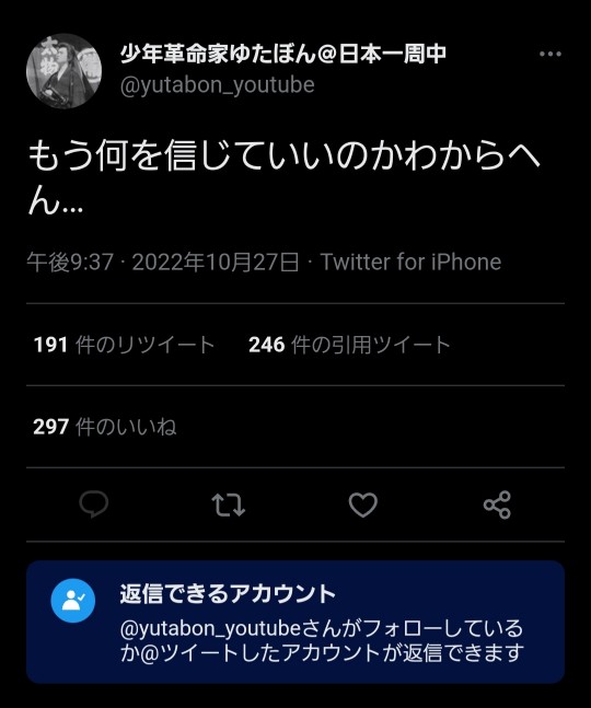 13以下、5ちゃんねるからVIPがお送りします2022/10/28(金) 13:26:33.568ID:xcjpqUiX0