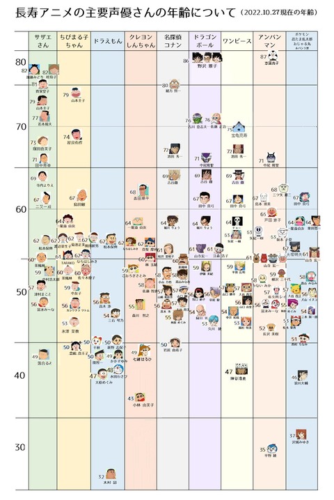 【画像】長寿アニメの声優の年齢表wwwwwwwwwww Twitter Facebook はてブ LINE コピー 2022.10.30 スポンサーリンク 1:以下、?ちゃんねるからVIPがお送りします:2022/10/28(金) 00:15:46.717 4:以下、?ちゃんねるからVIPがお送りします:2022/10/28(金) 00:17:58.073 17年ジャイアンやってる木村が一番若いのか 凄い世界だ 続きを読む