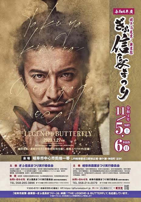 岐阜市は6日、俳優の木村拓哉さんが織田信長役で武者行列に出演した「ぎふ信長まつり」の同日の来場者数が約46万人だったと発表した。前回2019年の約25万人を大きく上回った。