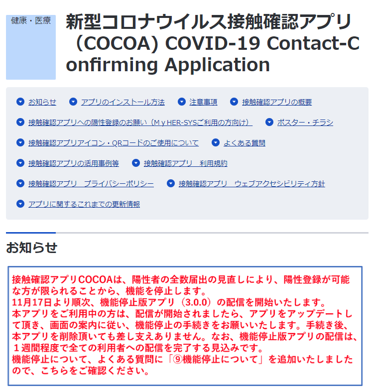 接触確認アプリ「COCOA」は17日から順次機能が停止