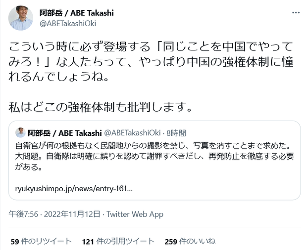 — 阿部岳 / ABE Takashi (@ABETakashiOki) November 12, 2022