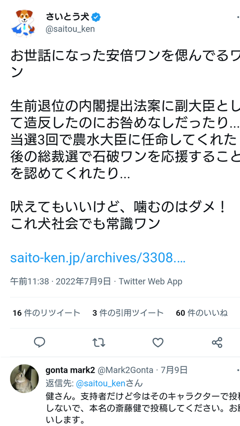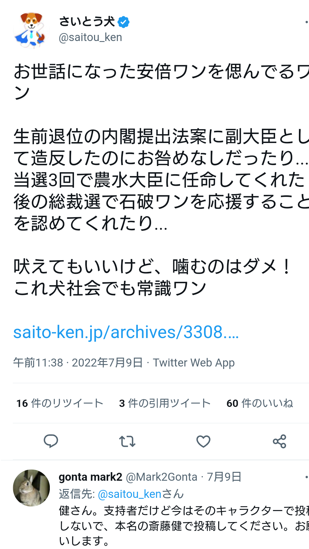 【悲報】新しい法相、なかなかヤバい 葉梨の4倍はヤバい (※画像あり) Twitter Facebook はてブ LINE コピー 2022.11.13 スポンサーリンク 1:風吹けば名無し:2022/11/13(日) 01:04:24.97 ID:iqpov8oua 2:風吹けば名無し:2022/11/13(日) 01:05:17.93 ID:iqpov8oua 支持者にやめてと言われる 16:風吹けば名無し:2022/11/13(日) 01:13:50.23 ID:HH7s881ya >>2 草 安倍ちゃん殺された日もこのスタイルでツイートするとか頭おかしすぎないか 30:風吹けば名無し:2022/11/13(日) 01:25:05.97 ID:ytMPWMM80 >>2 安倍ワン草 続きを読む