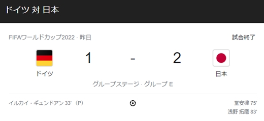日本代表のカタール・ワールドカップ(W杯)グループリーグ初戦、ドイツ代表戦が11月23日に行われ、前半33分にPKで失点して0-1のビハインドでハーフタイムを迎えた。