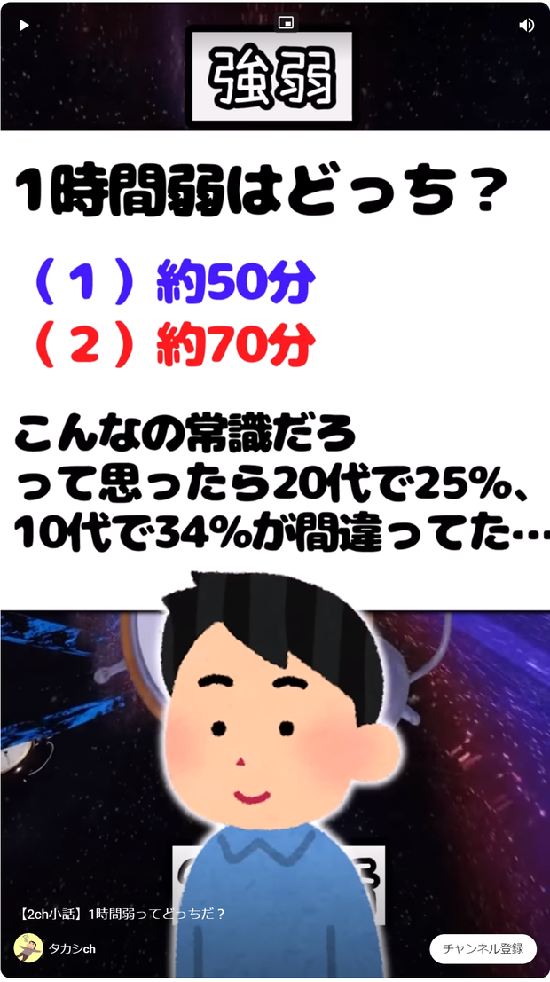 【悲報】1時間弱はどっち? (1)約50分 (2)約70分 20代の25%が間違えてしまう・・・・・・ Twitter Facebook はてブ LINE コピー 2022.11.24 スポンサーリンク 1:2022/11/24(木) 11:22:04.94 ID:KbgkJ7YO0 転載元スレッド:https://hayabusa9.5ch.net/test/read.cgi/news/1669256524/ 続きを読む