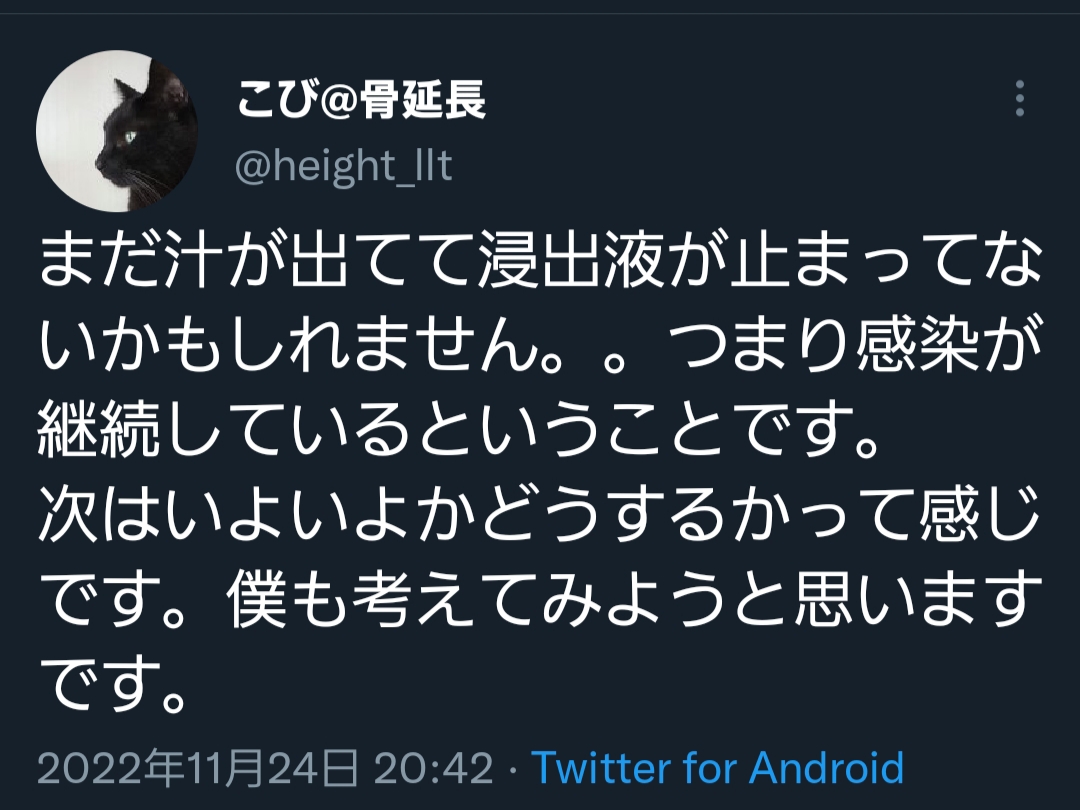 【悲報】骨延長の人、ついに切断か Twitter Facebook はてブ LINE コピー 2022.11.25 スポンサーリンク 1: それでも動く名無し 2022/11/24(木) 21:41:26.71 ID:INSlXqI20 覚悟を決めるもよう https://twitter.com/height_llt/status/1595744707409506305 関連記事身長を伸ばすためにトルコで骨延長手術を受けた男性、骨髄炎になり両足切断になりそう 5: それでも動く名無し 2022/11/24(木) 21:42:23.93 ID:tG62F5nJ0 意外に冷静やな 30: それでも動く名無し 2022/11/24(木) 21:44:44.49 ID:HIxHPeL+0 人生ワンチャンかけるほどのもんなんかね 続きを読む