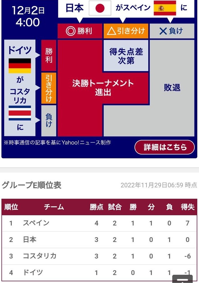 ドイツコスタリカ戦はたぶんドイツが勝つわけだがそれだとスペインに引き分けても総得点差でたぶん3位