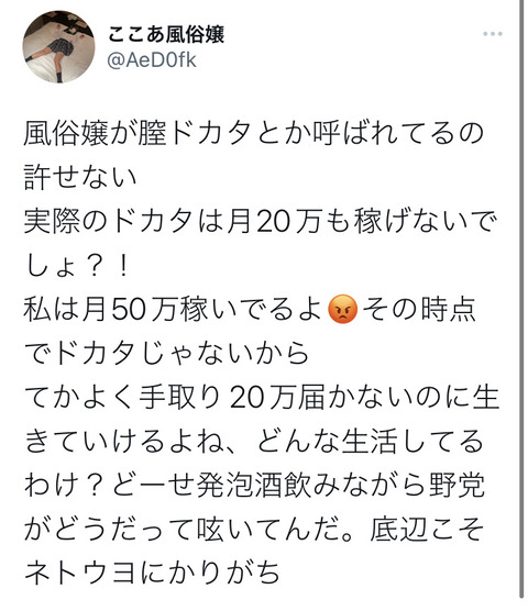 風俗嬢が膣ドカタとか呼ばれてるの許せない
