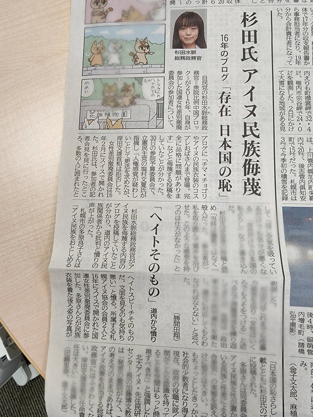 杉田水脈政務官、アイヌ民族に侮辱発言 「存在、日本の恥」 Twitter Facebook はてブ LINE コピー 2022.12.01 スポンサーリンク 1 : デネブ・カイトス(茸) :2022/12/01(木) 13:10:08.99 ID:y2oKQBVm0ソース自民・杉田氏、アイヌ民族やゆ投稿 16年に、野党「感覚疑う」https://www.hokkaido-np.co.jp/sp/amp/article/767787これもう完全にアウトだろ糞ボケ岸田は何やってんだ転載元スレッド:https://hayabusa9.5ch.net/test/read.cgi/news/1669867808/ 続きを読む