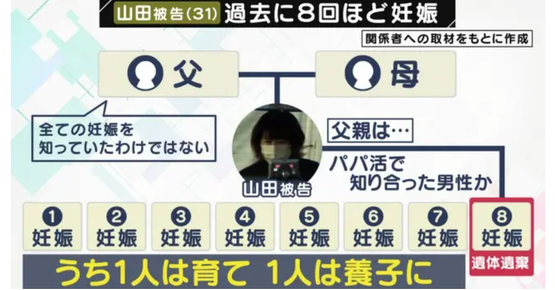 関係者によると、山田被告はこれまでに8回ほど妊娠。今回遺棄した子供は、生活費を稼ぐために行っていた「パパ活」の中での妊娠でした。