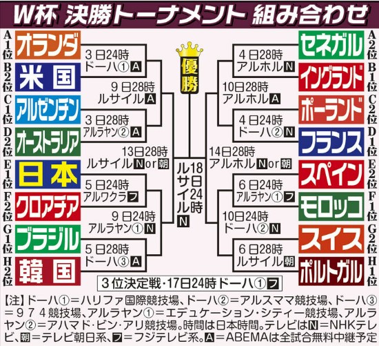 日本がクロアチアに勝ち、韓国がブラジルに勝つと日本対韓国に…