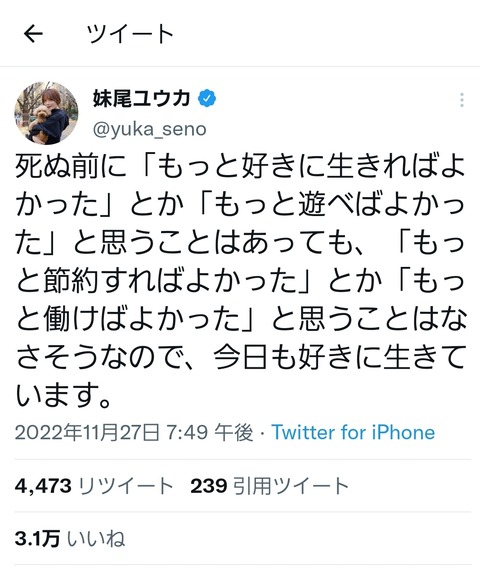 【画像】ツイッター民、ガチのマジで人生の真理を突く →3万いいねwwwwwwww Twitter Facebook はてブ LINE コピー 2022.12.05 スポンサーリンク 1:風吹けば名無し:2022/12/04(日) 20:48:47.39 2:風吹けば名無し:2022/12/04(日) 20:48:58.80 深いな 3:風吹けば名無し:2022/12/04(日) 20:49:08.72 確かに 続きを読む