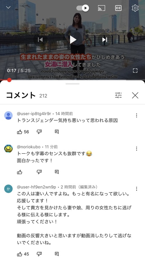【悲報】性転換手術を受けた元男さん、女湯潜入レポートをyoutubeに投稿して炎上してしまう。 Twitter Facebook はてブ LINE コピー 2022.12.09 スポンサーリンク 1:バン・アレン帯(オーストラリア) [RW]:2022/12/08(木) 16:31:02.24 ID:MElrg7Y80 BE:227847468-2BP(1500) ウクライナ侵攻当時にも不謹慎動画をあげて炎上 続きを読む