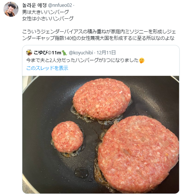 フェミさん、ハンバーグを3つ焼いているだけのツイートに発狂 Twitter Facebook はてブ LINE コピー 2022.12.14 スポンサーリンク 1:2022/12/13(火) 23:42:35.35 ID:Oz5cdL8m0転載元スレッド:https://nova.5ch.net/test/read.cgi/livegalileo/1670942555/ 続きを読む