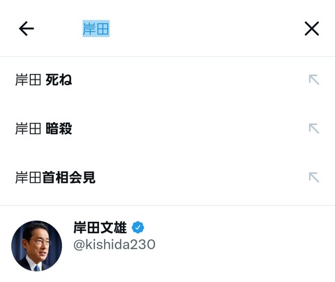 【画像】岸田総理のTwitter予測変換がヤバいと話題に、安倍ちゃんの時よりヤバい Twitter Facebook はてブ LINE コピー 2022.12.16 スポンサーリンク 1:以下、?ちゃんねるからVIPがお送りします:2022/12/15(木) 18:19:48.961 直球すぎる 4:以下、?ちゃんねるからVIPがお送りします:2022/12/15(木) 18:20:36.197 これ訴えられないのか 5:以下、?ちゃんねるからVIPがお送りします:2022/12/15(木) 18:20:54.265 嘘乙 今調べたら暗殺と死ね逆だったわ 国民こわ 続きを読む