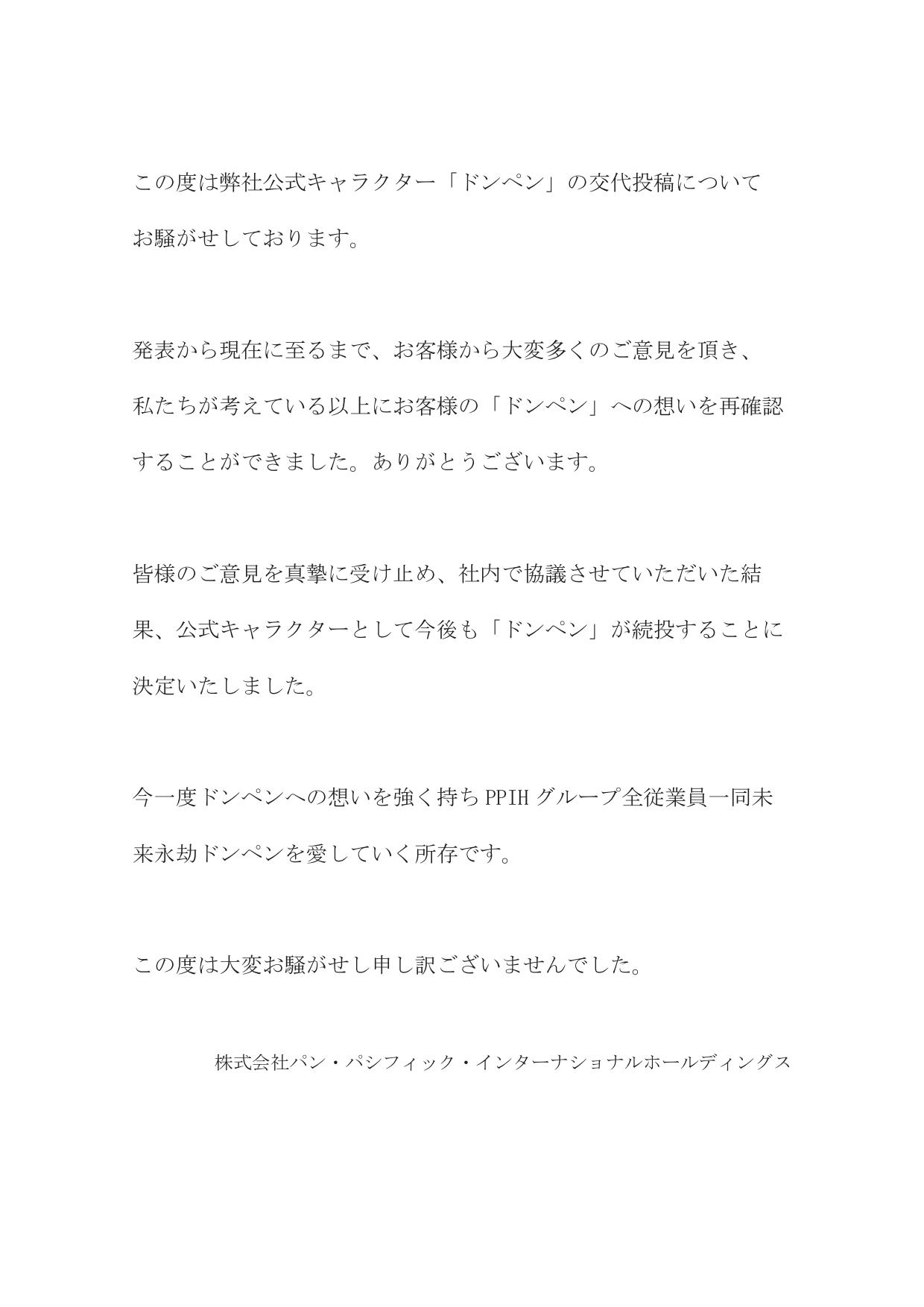 ドン・キホーテ公式キャラクターの交代につきまして、ご報告致します。 pic.twitter.com/SgIK3ZKQdH