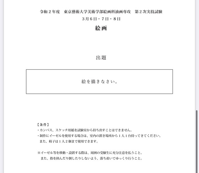 【画像】藝大の入学試験問題がヤバすぎると話題にwwwww Twitter Facebook はてブ LINE コピー 2022.12.16 スポンサーリンク 2: それでも動く名無し 2022/12/16(金) 12:27:49.04 ID:loRnUZRE0世界の奇妙な事なんでもいいから挙げて は? 続きを読む