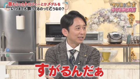 有吉は「スゴい人にはそういうものはさ、どっか倉庫とかに入れといてさ」と過去の栄光にすがりトロフィーに執着するのではなく、「過去は過去で次に行くんだな」と感じさせてほしいと力説した。