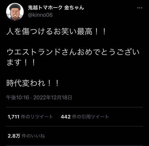 【悲報】吉本芸人「人を傷つけるお笑い最高!!」