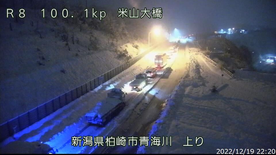 柏崎市によりますと国道8号の一部区間で全面通行止めとなっている影響で多くの車が立ち往生をしていることから、