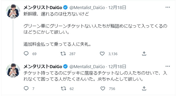 メンタリストDaiGo「貧乏人はチケット無いのにグリーン車に入るな!」有名作家 渡辺淳一「!」シュバババ Twitter Facebook はてブ LINE コピー 2022.12.20 スポンサーリンク 1:2022/12/20(火) 16:31:39.54 ID:l2vmtt6V0これどっちが正しいの?転載元スレッド:https://eagle.5ch.net/test/read.cgi/livejupiter/1671521499/ 続きを読む
