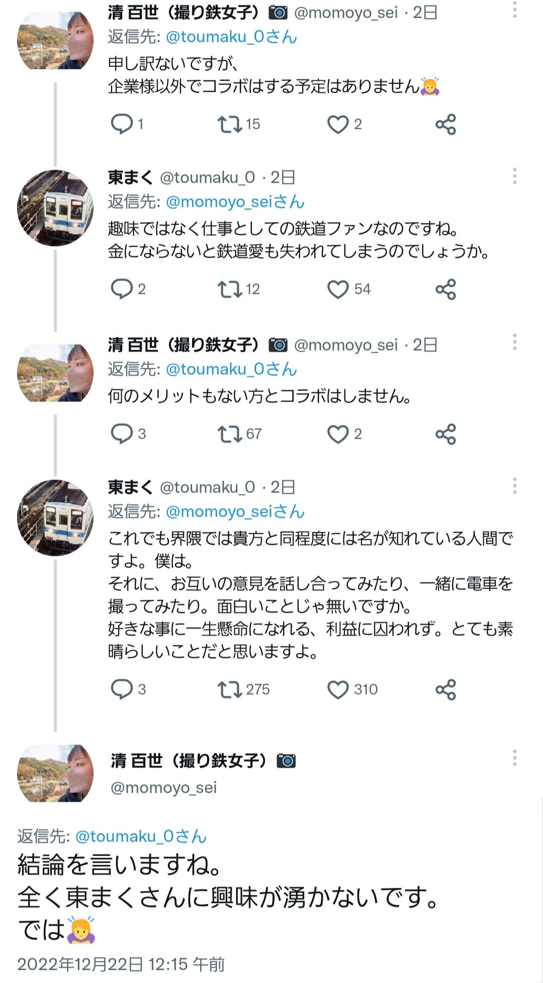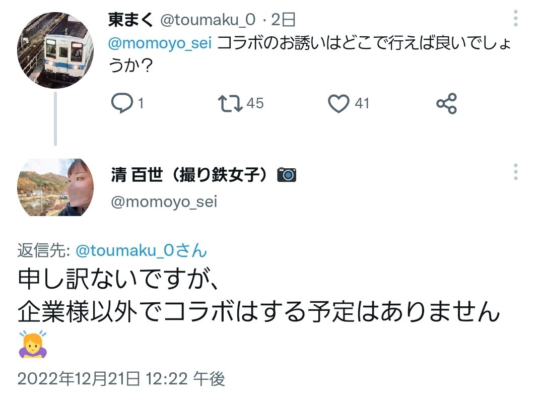 【悲報】撮り鉄さん、勇気を出して撮り鉄女子にコラボを依頼するも無事フラれる#撮り鉄速報 pic.twitter.com/OQubd6ClP4
