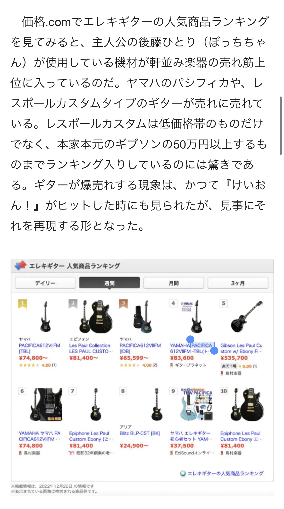 「ぼっち・ざ・ろっく!」の影響でギターが売れまくる!お前らの想像の3倍くらいは売れてる Twitter Facebook はてブ LINE コピー 2023.01.03 スポンサーリンク 1: それでも動く名無し 2023/01/02(月) 14:40:07.19 ID:Wy9O8QDL0 50万のレスカスも飛ぶように売れてる https://news.yahoo.co.jp/articles/5f953512bd31c1c1bb1ab03e6fbea6e91e28fdc6 3: それでも動く名無し 2023/01/02(月) 14:40:33.47 ID:FggPujXGd オタクちょろすぎわろた 4: それでも動く名無し 2023/01/02(月) 14:41:17.23 ID:rk3NXxHBd けいおん再来やな 続きを読む