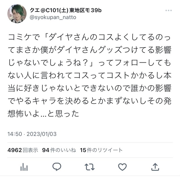 【悲報】コスプレイヤーさん、オタクの常識のなさにドン引きしてしまう… Twitter Facebook はてブ LINE コピー 2023.01.04 スポンサーリンク 1:2023/01/04(水) 12:47:44.46 ID:dhDVnE47d2:2023/01/04(水) 12:48:03.16 ID:wvkmNAdR0あなたですで草3:2023/01/04(水) 12:48:23.22 ID:b0nHPGKIr草転載元スレッド:https://nova.5ch.net/test/read.cgi/livegalileo/1672804064/ 続きを読む