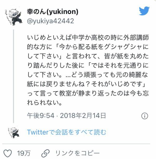 Twitter「紙をグシャグシャにして下さい」「…元には 戻りませんね?それがいじめです」→20万いいね Twitter Facebook はてブ LINE コピー 2023.01.09 スポンサーリンク 1:2023/01/09(月) 13:48:00.98 ID:cGb5WEnp0転載元スレッド:https://eagle.5ch.net/test/read.cgi/livejupiter/1673239680/ 続きを読む