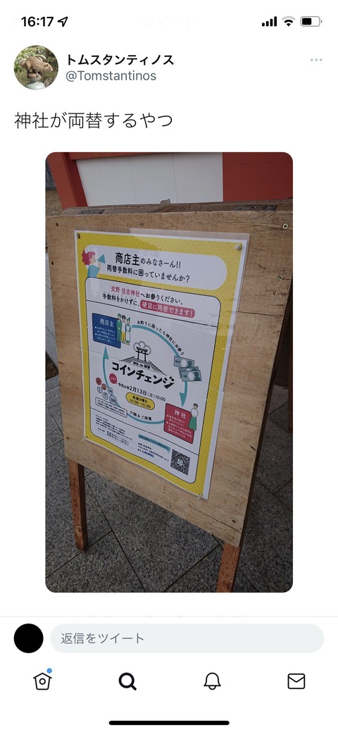 【画像】神社、両替屋開始wwwwwwwww Twitter Facebook はてブ LINE コピー 2022.01.25 スポンサーリンク 1:以下、?ちゃんねるからVIPがお送りします:2022/01/24(月) 17:26:27.094 ID:83QIiHRad.net 3:以下、?ちゃんねるからVIPがお送りします:2022/01/24(月) 17:27:58.294 ID:IXA0j7xV0.net 賢い 4:以下、?ちゃんねるからVIPがお送りします:2022/01/24(月) 17:28:04.264 ID:y8xDa9xQa.net WINWINの関係だ 5:以下、?ちゃんねるからVIPがお送りします:2022/01/24(月) 17:28:37.045 ID:B5Me2qls0.net 銀行要らずでワロタ 続きを読む