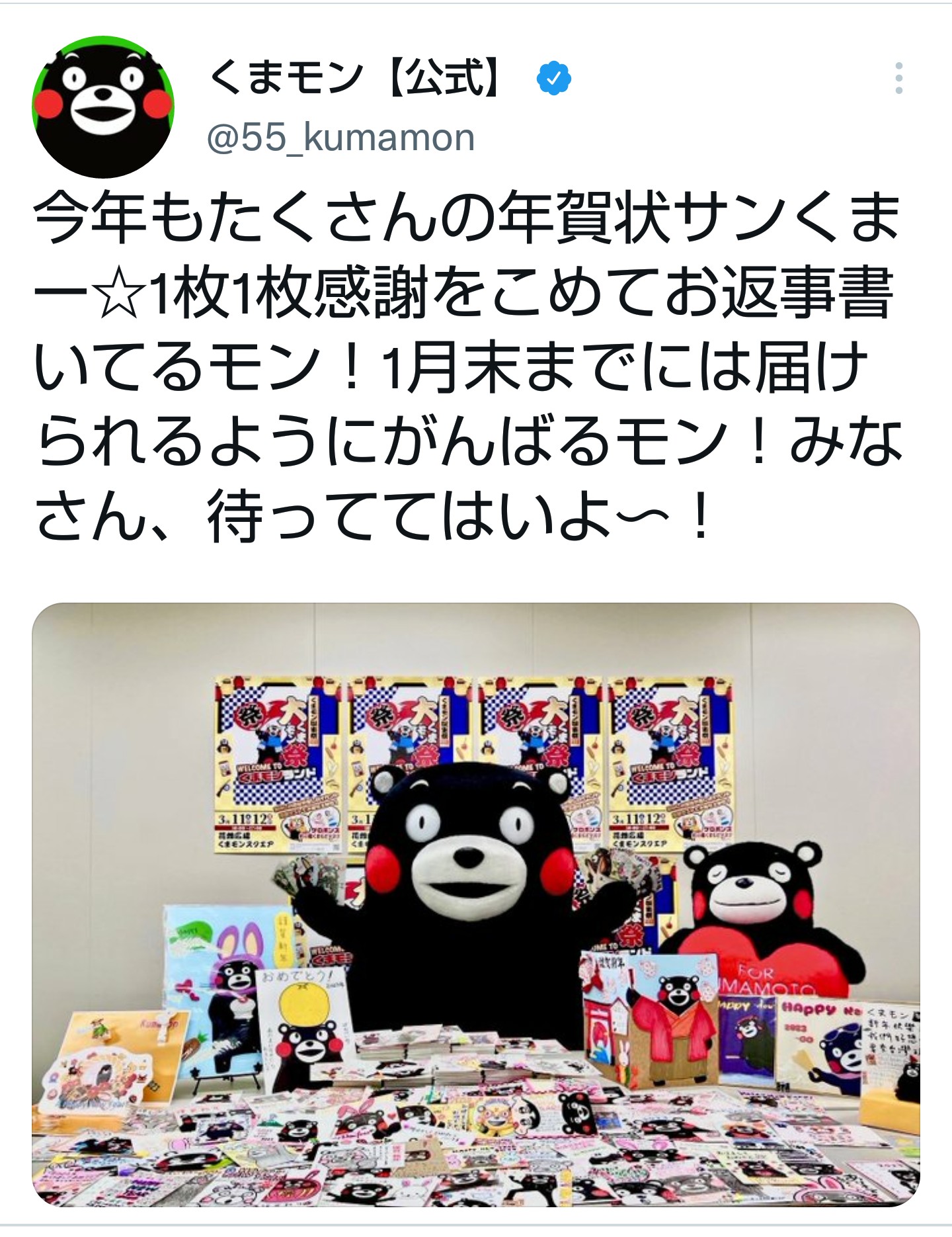 熊本県の営業部長くまモンに5013通(4日時点)の年賀状が届いた。全国すべての都道府県から寄せられ、海外の13カ国・地域からも48通が届いた。