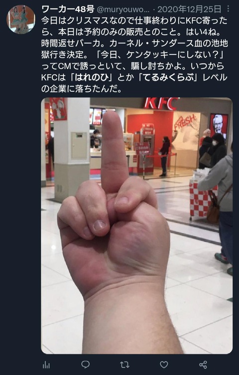 【悲報】まんさん、KFCでフライドチキンを購入できずご立腹の様子… (※画像あり) Twitter Facebook はてブ LINE コピー 2023.01.12 スポンサーリンク 1:以下、5ちゃんねるからVIPがお送りします:2023/01/09(月) 13:22:32.864 ID:UMl6XKw00 悲しいね… 2:以下、5ちゃんねるからVIPがお送りします:2023/01/09(月) 13:23:04.720 ID:g9pZXsB20 こういうガイジってガイジ? 4:以下、5ちゃんねるからVIPがお送りします:2023/01/09(月) 13:23:31.995 ID:tQ5Do1Gha 手がデブ 続きを読む