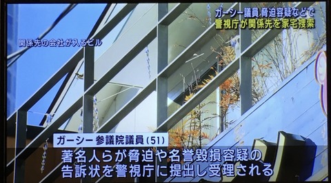 【悲報】ガーシー議員、終わる 著名人への脅迫容疑で家宅捜索 Twitter Facebook はてブ LINE コピー 2023.01.12 スポンサーリンク 1:風吹けば名無し:2023/01/12(木) 11:51:11.73 終わり 2:風吹けば名無し:2023/01/12(木) 11:52:00.83 アイツってマジでガーシー議員で言うの? 通称ちゃうんか 14:風吹けば名無し:2023/01/12(木) 11:57:14.89 >>2 基本は立候補時の名義で報道されるで アントニオ猪木元参院議員みたく 61:風吹けば名無し:2023/01/12(木) 12:19:42.19 >>2 選挙出る時に通称使う許可の申請出してそれ通れば使える 続きを読む