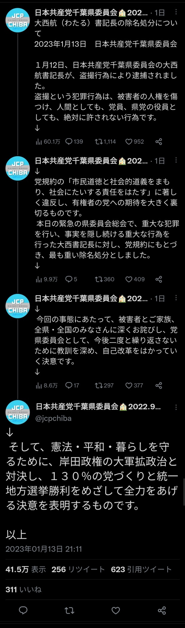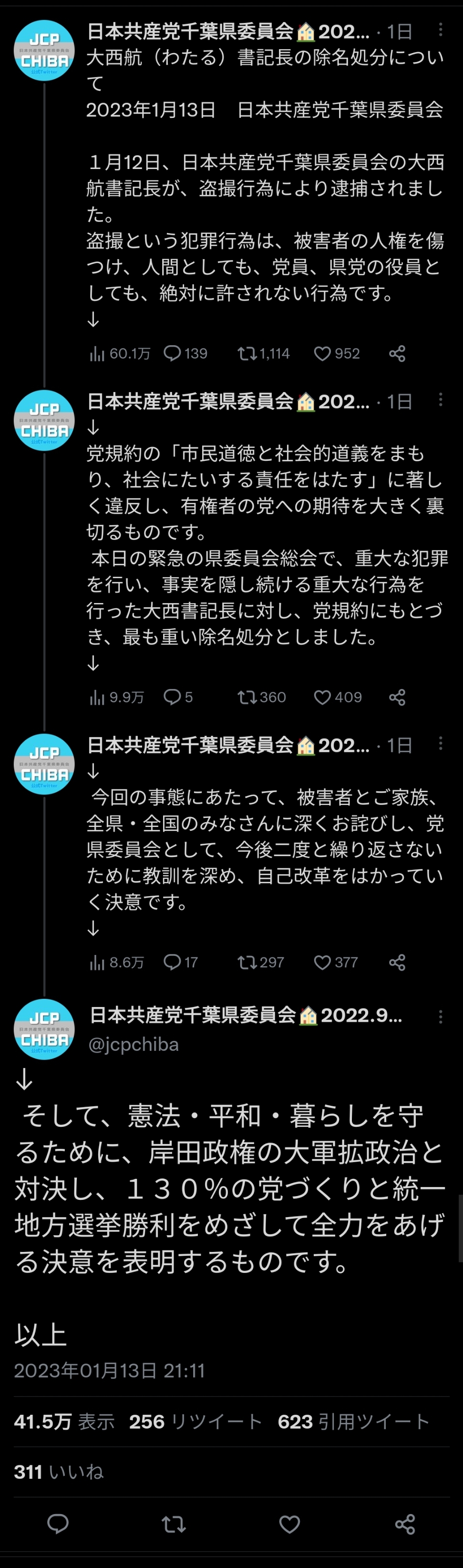 — 日本共産党千葉県委員会🏠2022.9から新事務所で奮闘中📦 (@jcpchiba) January 13, 2023