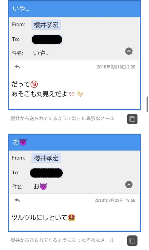 【悲報】櫻井孝宏、セ●レに送ったメールが晒されてしまうwwwwwwwwww Twitter Facebook はてブ LINE コピー 2023.01.17 スポンサーリンク 1:風吹けば名無し:2023/01/17(火) 18:33:54.25 かなしい 2:風吹けば名無し:2023/01/17(火) 18:34:28.00 CV櫻井孝宏で読み上げて欲しい 3:風吹けば名無し:2023/01/17(火) 18:35:11.63 悔しい…ですよね 続きを読む