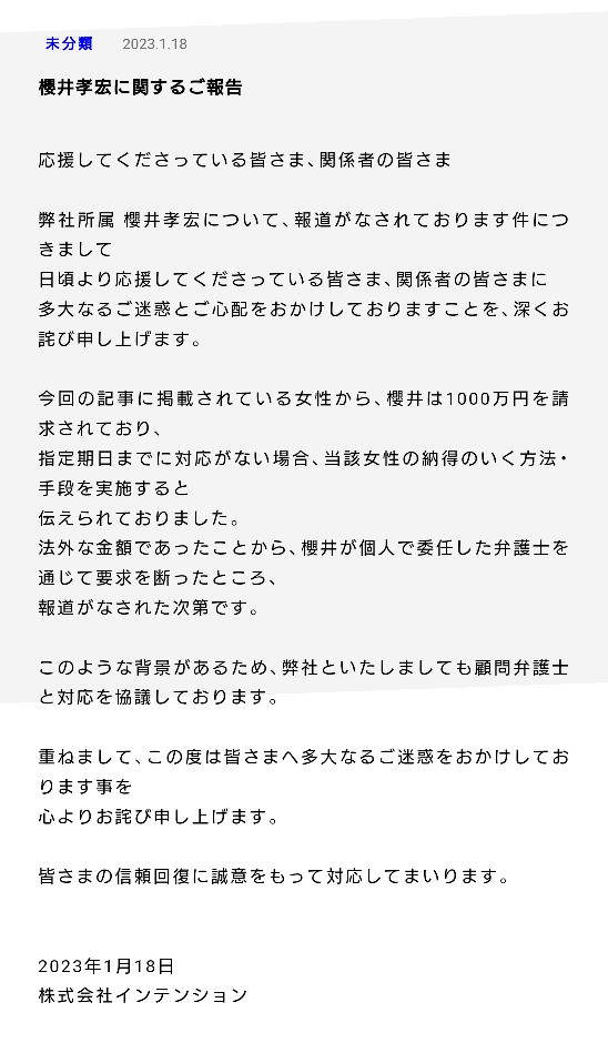 櫻井孝宏に関するご報告https://t.co/VmOMu6Pj7D