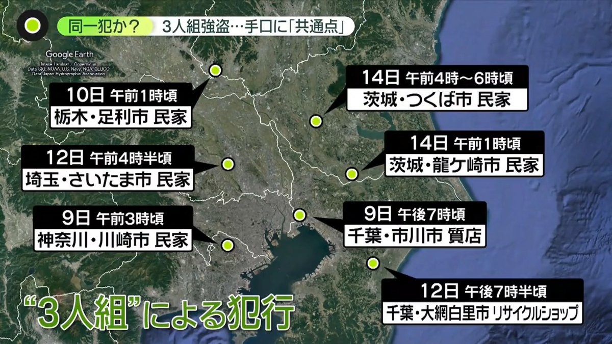 関連は不明ですが、関東では3人組の男による緊縛強盗が相次いでいて、多摩川の対岸の川崎市では9日に70代の女性が手足を縛られるなどして現金や貴金属が奪われる事件が起きています。
