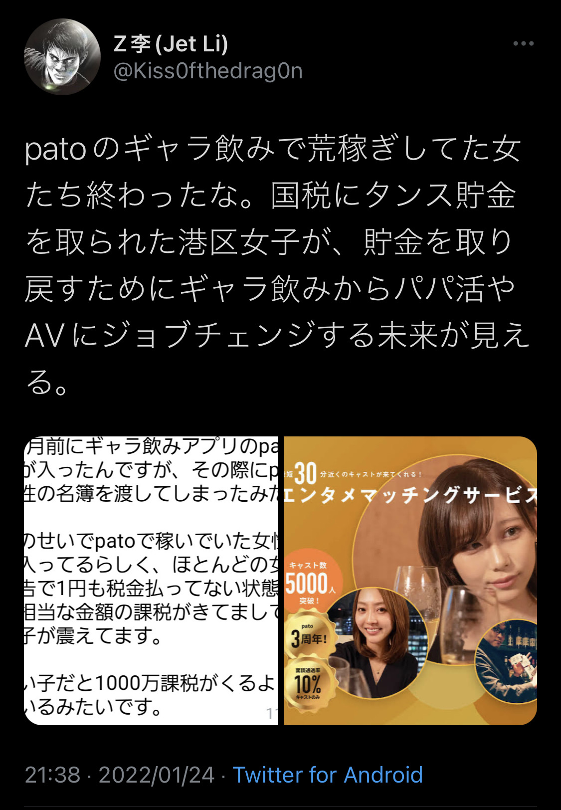 【マジか】港区女子さん、震える… Twitter Facebook はてブ LINE コピー 2022.01.26 スポンサーリンク 1:以下、?ちゃんねるからVIPがお送りします:2022/01/25(火) 22:21:02.329 ID:fBLhkVkM0.net やったぜ 3:以下、?ちゃんねるからVIPがお送りします:2022/01/25(火) 22:22:44.227 ID:9h9fKeBW0.net マトモなやつなら税金くらい払ってるだろ知らんけど 4:以下、?ちゃんねるからVIPがお送りします:2022/01/25(火) 22:23:02.395 ID:QFuOB4vC0.net もっとやれ徹底的にやれ今の日本にこいつらを飼う余裕はねぇ 続きを読む
