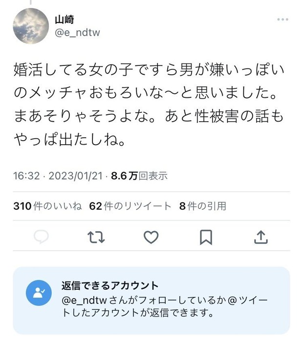 【悲報】女子「あの、男は勘違いしないでほしんですけど、婚活女子ってみんな“男が嫌い”です。」