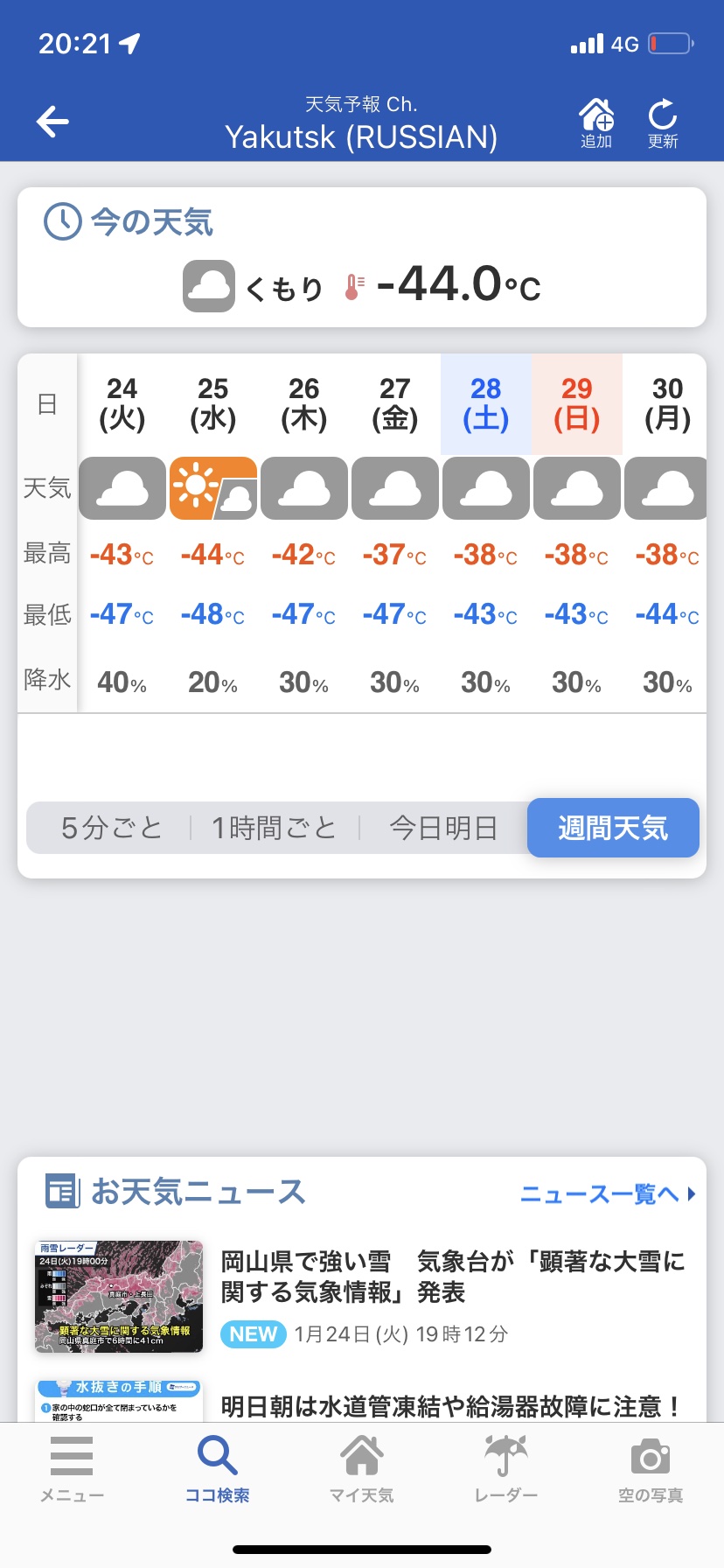 【悲報】ロシアの今週の気温、ガチで限界突破 Twitter Facebook はてブ LINE コピー 2023.01.25 スポンサーリンク 1:2023/01/25(水) 07:46:44.20 ID:qKNPo5le0 ヤクーツク気温 - Google 検索転載元スレッド:https://nova.5ch.net/test/read.cgi/livegalileo/1674600404/ 続きを読む