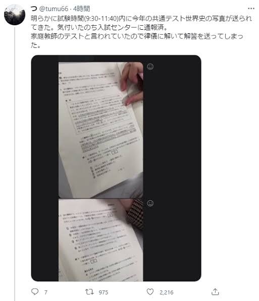 読売新聞の取材に対し、この2人の学生は「問題を解き、解答を送った時は共通テストの問題だとは思わなかった」と話した。不審に思った学生はその後、大学入試センターに届け出た。