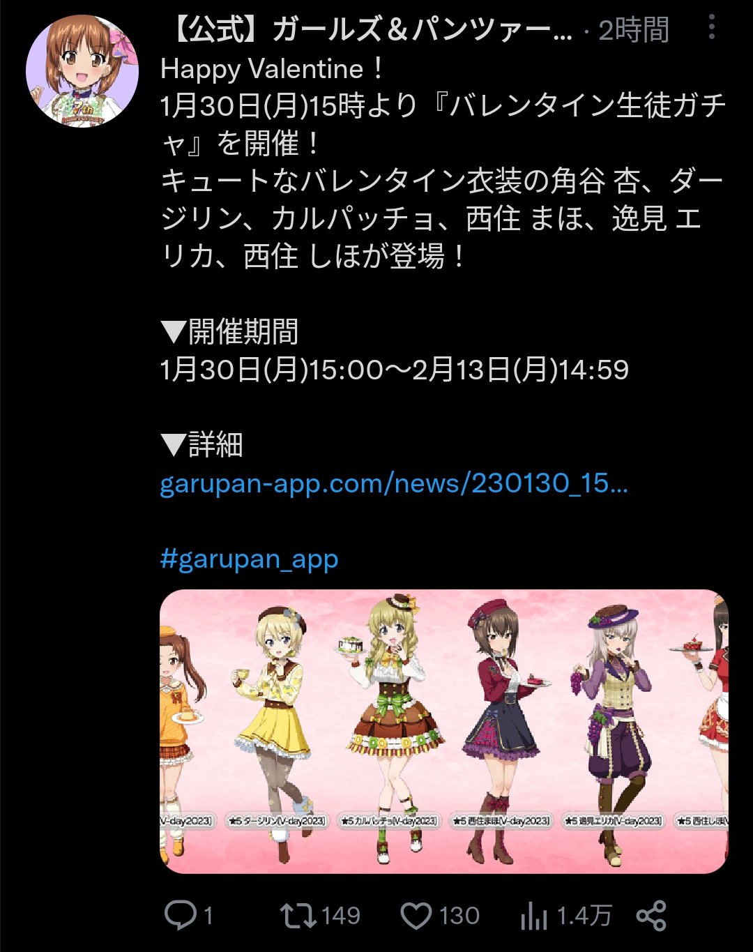 【朗報】ガルパンのソシャゲ、今度ばかりは奴がいない模様 Twitter Facebook はてブ LINE コピー 2023.01.31 スポンサーリンク 1: それでも動く名無し 2023/01/30(月) 17:34:49.28 ID:h4uUxlHrr よかったよかった☺ https://twitter.com/garupan_app/status/1619938962113544192 3: それでも動く名無し 2023/01/30(月) 17:35:35.89 ID:iCGou9Mha ん? 7: それでも動く名無し 2023/01/30(月) 17:36:54.13 ID:X/CEkG2Op なんか見切れてませんか? 続きを読む