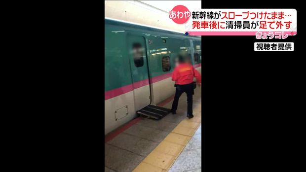 31日午後、JR東京駅で東北新幹線が車両の出入り口に乗降用の車いす用スロープを取り付けたまま発車し、清掃員がとっさに足で外すトラブルがありました。