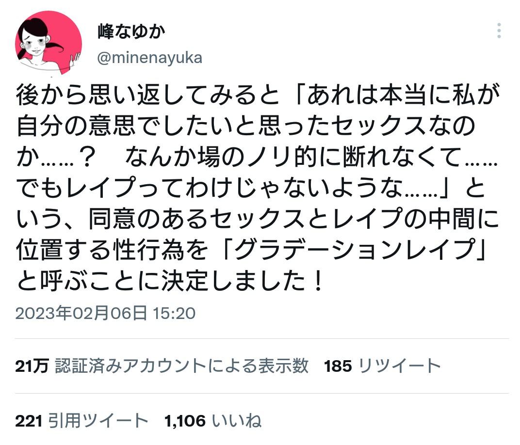 同意のある性交と強姦の中間に位置する性行為を「グラデーション強姦」と呼ぶことに決定しました!